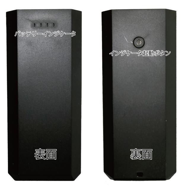 バッテリー部は、横面にmicro-USB Type Bの充電端子があり、表面には25%刻みのバッテリー残量インジケータ(4つの青LED)が付いています。