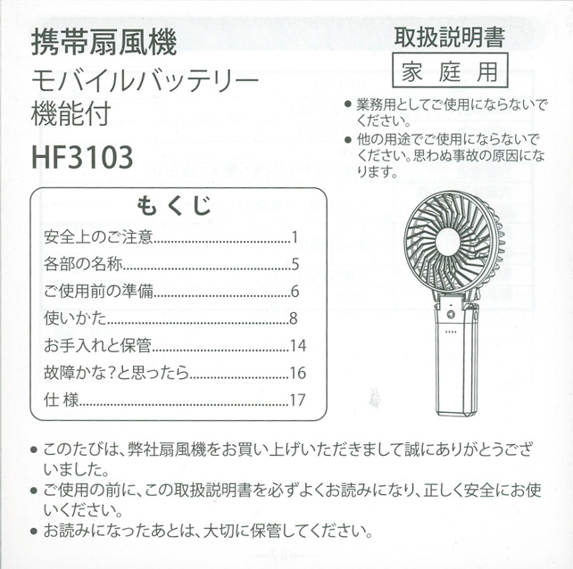 扇風機として使わない時(シーズンOFF時)は、モバイルバッテリとして使うことができます。