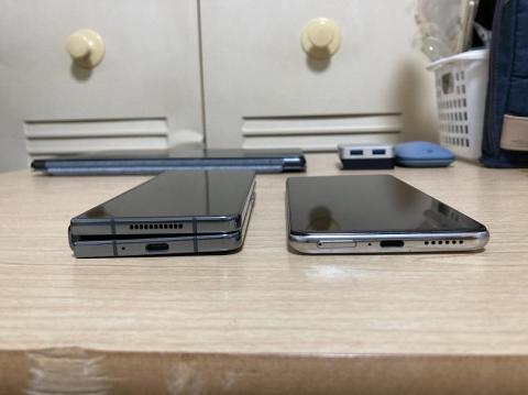 折りたたみ時は隣のXiaomi11TProと比較すると幅は小さくかなり分厚いです。