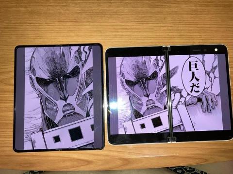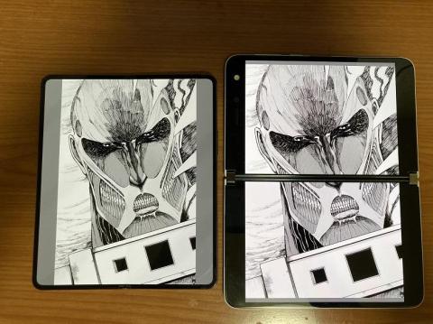 両方見開き表示にするとSurfaceDuoが見開き時の余白が大きく両者ほぼ同じサイズでの表示。