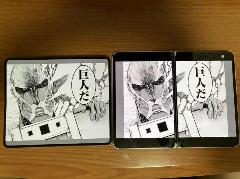 1ページ表示では、SurfaceDuoのがかなり大きく表示できますが、継ぎ目が致命的にアウト。
