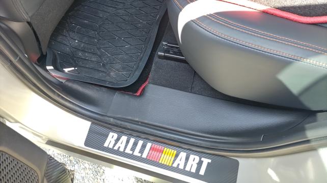 フロアマットは純正のRALLIART仕様の物を購入したので、同じような黒地にウォーロックを赤にしてみました。