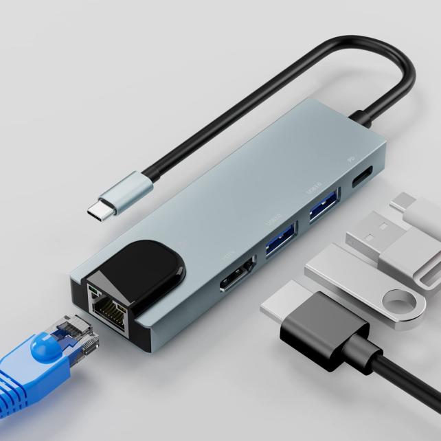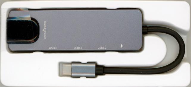 このUSB HUBを使うと、USB PD(出力最大85W)でノートPCに電力を給電しながら、USB 3.0 Gen1x2とHDMI出力とイーサネットコネクター(1,000Mbps)を使うことができます。