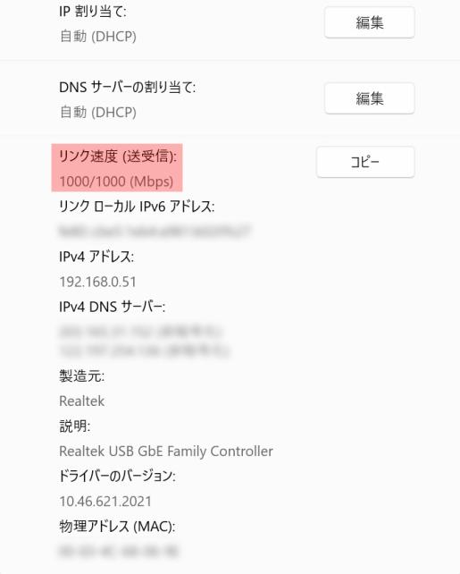 上記は、Windows 11のネットワークプロパティですが、このUSB HUBは、Realtek製USB GbEコントローラーを搭載しているようです。