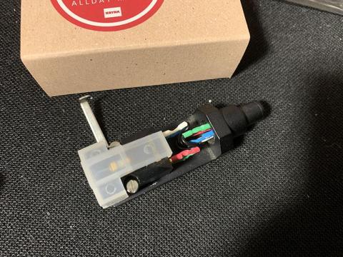 普段はシェルリード線の試聴にはZYX R50 Bloomを使うのですが、今回は同時に試聴した製品がZonotone製であり、リードチップの径が細くできているため、ターミナルピンが太めのZYX製カートリッジに装着するのがかなり面倒になるため、DENON DL-103Rを使うことにしました。