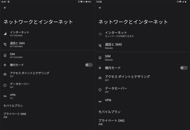しかし、残念なことに、インターネットにアクセスできるのは、docomo SIMのみで、楽天モバイルのSIMでは、音声通信のみでインターネットに接続できませんでした。