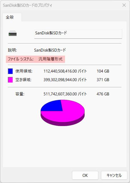 また、micro SDに関しては、本体に挿すと、フォーマットを要求されたので、初期化してみると、ファイルシステムは、汎用階層形式と表示されたのですが、実はFAT32でした。