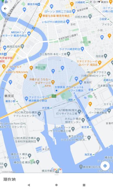 下記地図は、このタブレットを持って行った汐入付近で表示されたものです。