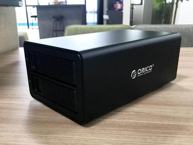 ORICO から販売されている 3.5インチ HDDケース「3529RU3-BK」です。HDD を2本差すことができます。まだ価格が安い 8TB のストライピング → 16TB までデータを溜められるので、とりあえず14TB のデータ容量のしのぎにはなります。