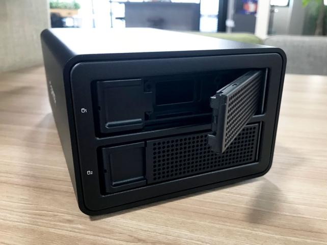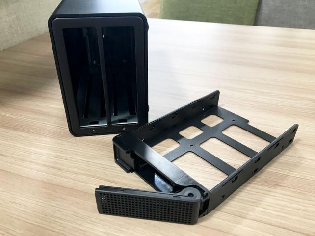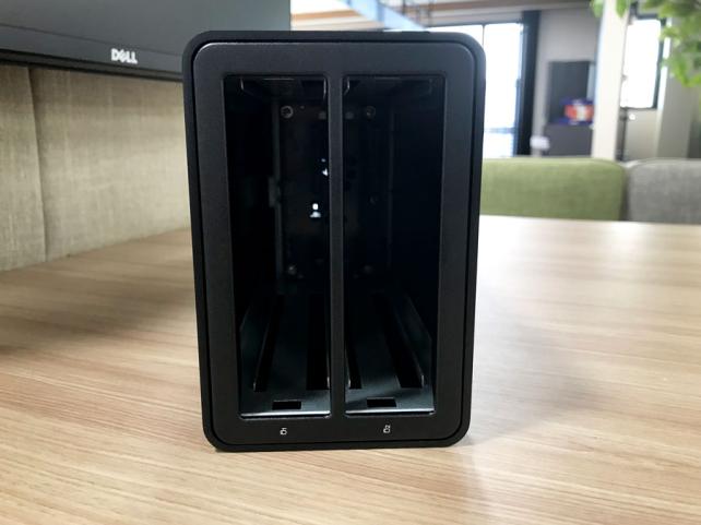 僕がアルミ材の質感が好きなこともあるのですが、シンプルで外観は好き。HDDトレイのある顔は少し安っぽい印象はあります。
