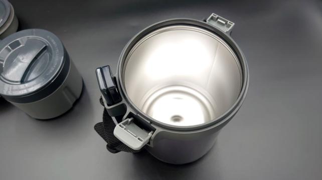 なめらかなステンレス製でできた内部はいわゆる「魔法瓶構造」で、真空二重構造になっていることで高い保温効果があります。早朝に作ったお弁当がランチタイムまで温かいです。