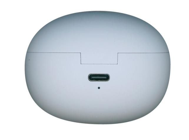 充電ケースの蓋を開けると、電源が入り、バッテリー残量により、USB端子の下のLEDが、赤>白の点滅回数1~4になります。数が多い方が充電残量が多いことを表します。