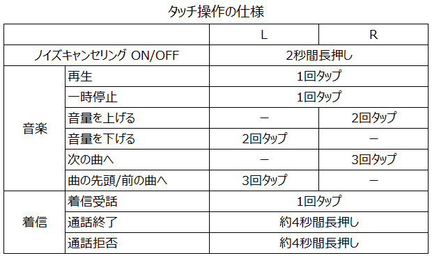 また、このイヤフォンは、左右各々にタッチセンサーを搭載していて、耳に装着した状態で、ノイズキャンセリングのON/OFF/アンビエンス(周囲の音を拾う)の切り替えや、ボリューム調整、曲の前後への移動による選曲が可能です。