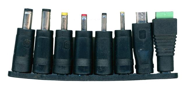 このACアダプターには、様々な径の電源端子や、micro USB端子、電線を直接挿せる端子が同梱されていましたが、私の場合、径もぴったりだったので、これらの電源端子アダプターを利用することなく使うことができました。
