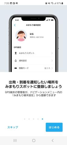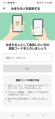 GPS端末の管理者が認証コードを登録すると見まもりが開始されます。