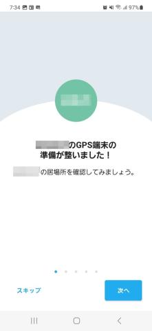 次へを押すと、いくつかの説明の後「みてねみまもりGPS」の位置が表示されたマップが表示されます。