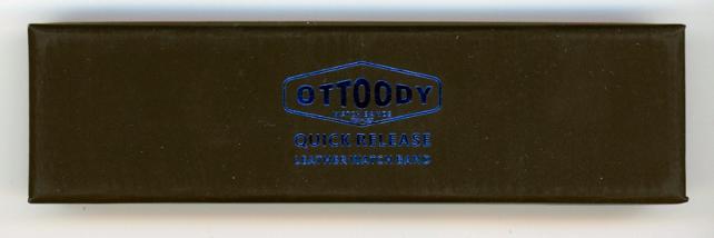 パッケージは、黒のマット調に光沢のある鮮やかな青のメーカーロゴと時計バンドの特徴である、"クイックリリース"という文字と、革製時計バンドという文字が英文で記載されていました。