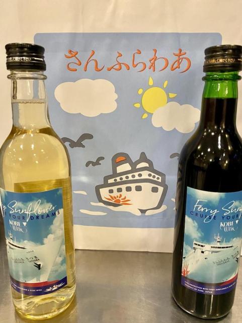 頻繁に大分に帰省する友人が、フェリーさんふらわあで買い求めてくれたオリジナルワイン赤白