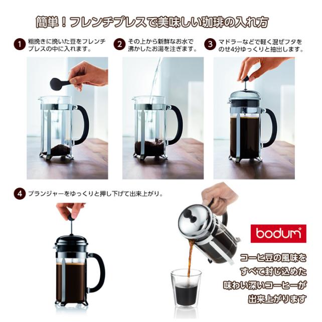 CHAMBORDは既に同じボダムの紅茶用のを使っておりまして、気に入ってるのでチェック。