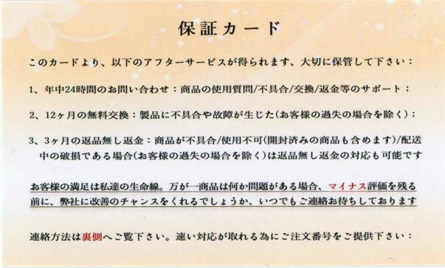 裏面には、商品の特徴、使い方、注意点が記載されています。