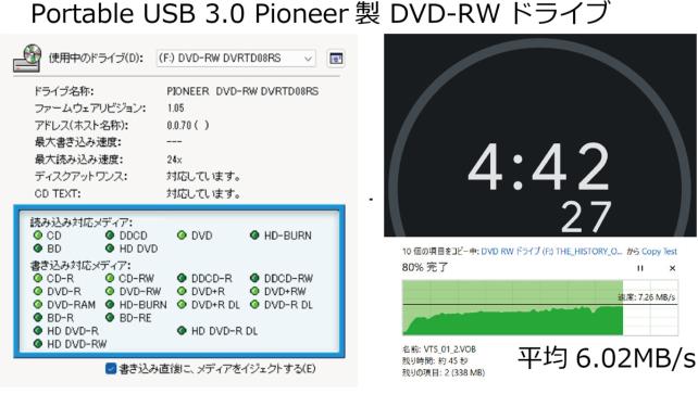 USB 2,0 DVD-RWドライブが、4分50秒掛かり、このUSB 3.0 DVD-RWドライブが、4分42秒、SATAのBDドライブが、4分41秒でした。
