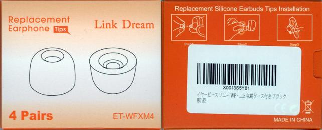 パッケージは、お世辞にも高級感があるとは言えない、オレンジパッケージで、背面にはイヤーピースの交換方法が図解されています。