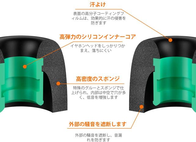 同じSONY製とはいえ、イヤーピースに互換があるのか不明でしたが、純正と同じ緑色のインナーコアのイヤーピースを装着してみましたが、全く問題ありません。