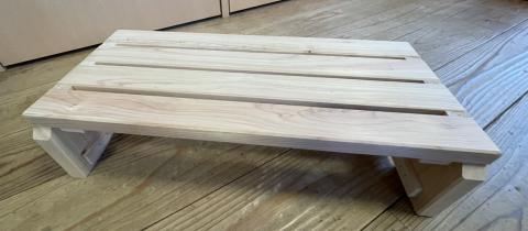 洗濯機の上に設置。洗濯機のフタが折り畳み式なので、専用台を約1380mmの高さにしました。