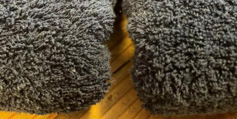 左は自然乾燥、右は乾燥機後のバスタオルです。
