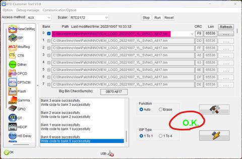 その為、状況をメーカーに問い合わせたところ、テストモードを無効化してる最新ファームに書き換えて欲しいと言うことでファームを頂きました。