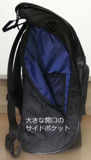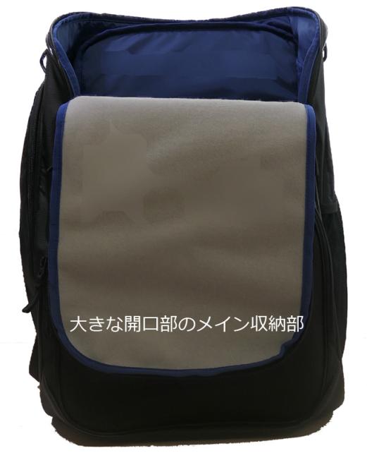 バックの外装を見ると判りますが、シューズの収納は、バック表面から飛び出していなので、シューズの大きさ分内側に張り出して、内部が狭くなります。
