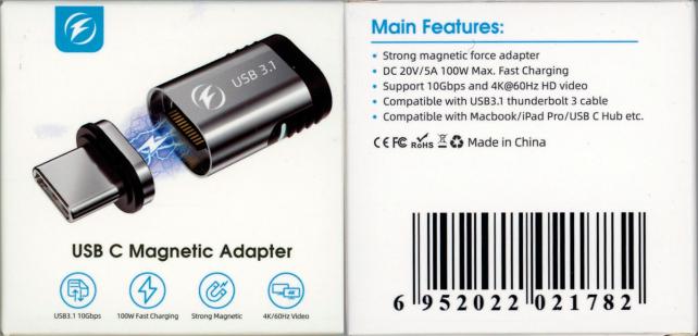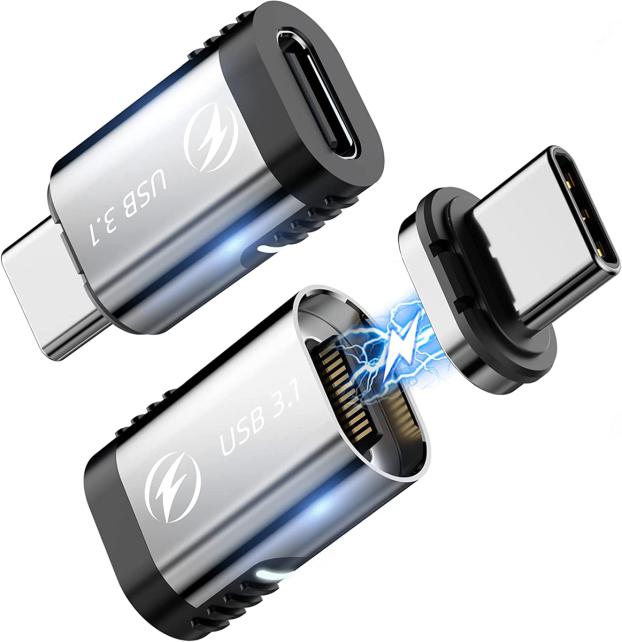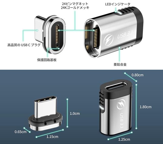 USB Type-Cの左飛込みコネクター部と、USB Type-Cケーブルの先端に挿し、コネクター部と磁力により接続を行うアダプターです。