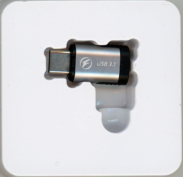 このアダプターは、両側にLEDが付いていて、通電(ACアダプターでの充電でなくても、USB端子には、5Vの電圧が掛かっている)すると、ホワイトLEDが点灯します。