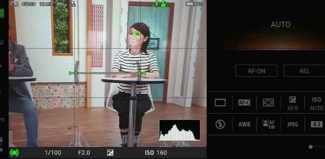 試しに撮影してみましたが、SONYのミラーレスカメラαシリーズのようなインターフェイスを備え、テレビ画面を撮影しても、ちゃんと手前の瞳にフォーカスします。
