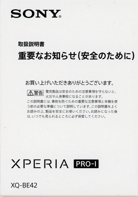 パッケージは、白を基調としたもので、表面には、Xperia PRI-Iの記述のみです。