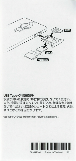 パッケージサイズは、結構な厚みがあるのですが、パッケージの中には、スマートフォン本体以外には、スタートアップガイド、重要なお知らせ、注意書き、保証書のみです。