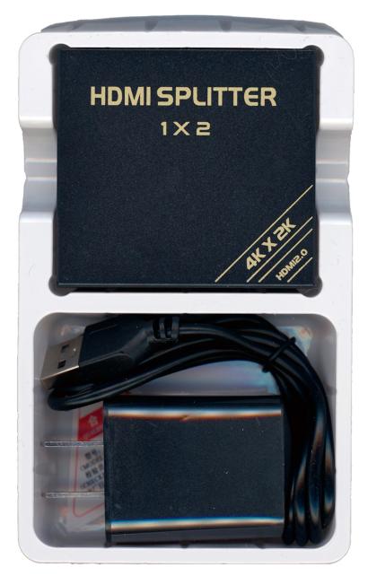 天面には、黒いパネルに、HDMI SPLITTER 1x2と記載があり、その他には、4Kx2K HDMI 2.0という記載が金文字で印刷されています。