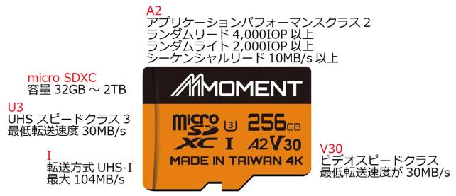 micro SDカードには、様々な仕様が存在し、その主だった仕様を表すマークが、商品自体に表示されています。
