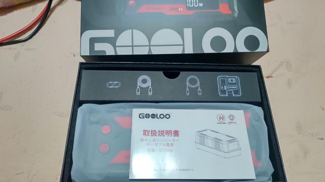 この手の大容量バッテリーの中にはインバーター内蔵していて本体から直接100Vの出力が取れるものが有ったりしますが、この製品は外付けの別体になっていて、一見デメリットにも見えますが、別体になっていることによって、それを使って車内で充電できるようにと考えられているようです。