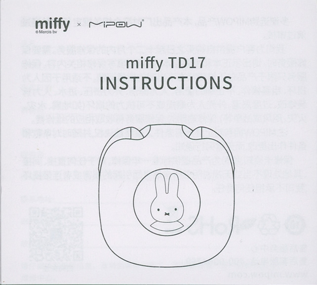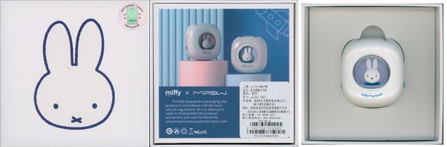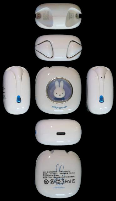 本体の充電ボックスは、角丸の白いボックス形状で、中窓にmiffyが居ます。