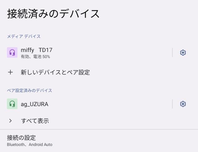 イヤフォンの登録は、一般的なBluetoothヘッドフォンと同じで、Bluetoothのプロパティから、デバイスの追加を操作すると、"miffy TD17"というデバイスが表示されますので、選択して登録するだけです。