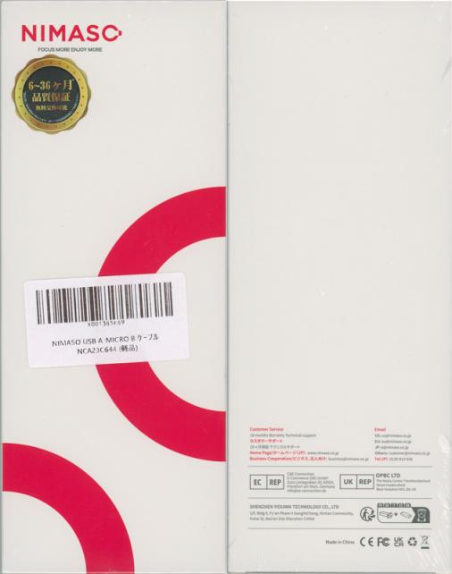 白バックに、赤のリング状のデザインがなされたもので、メーカーロゴも赤で描かれています。