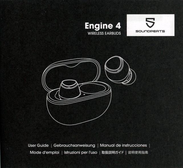 裏面には、充電ケースを含む商品写真と型番(Engine 4)と基本的なスペックが記載されています。
