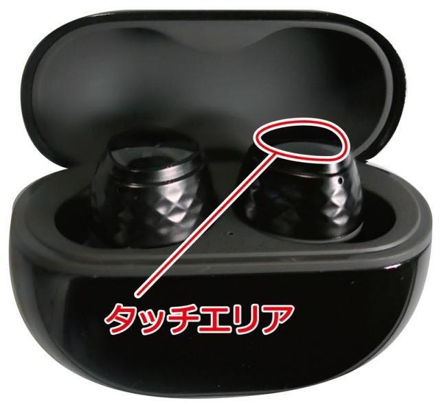 イヤフォン本体には、インジケーターは無く、イヤフォンの平らな部分にタッチコントロールが付いています。