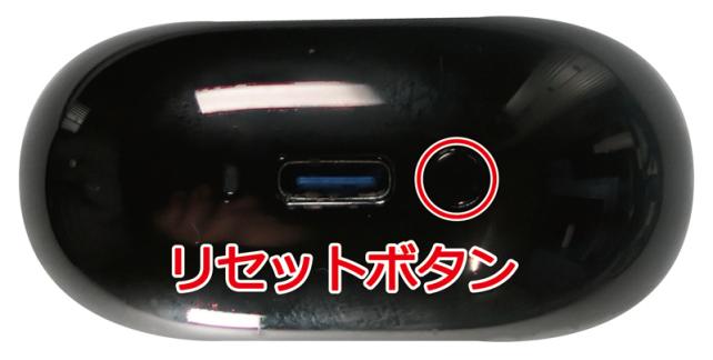充電ケースの底面には、充電端子であるUSB Type-C端子があり、端子の右横にはリセットボタン、左横には充電インジケータ(LED)が付いています。