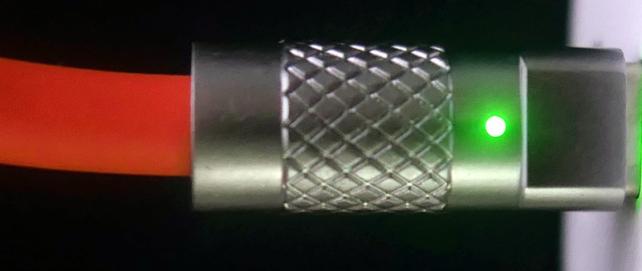 コネクター部には、両端とも片側だけですが、通電すると緑LEDが点灯します。