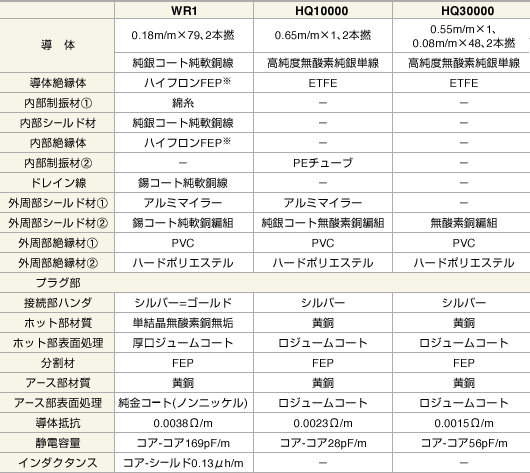 それによるとHQ30000は純銀線で、ETFE絶縁体を採用しているとのことです。ETFE絶縁体は一般的なPVCと比較して耐熱性、耐薬品性に優れ、比誘電率も低くオーディオケーブルに適した素材だそうです。