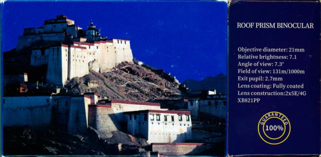 側面に、双眼鏡であることと、その仕様が記載されています。