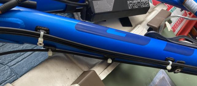まぁ何とかケーブルをまとめる事が出来てスッキリしました。台座部分は両面テープで貼り付けで粘着力の強いタイプですが屋外の環境でどれだけ持つかは微妙です。専用の樹脂製クリップが付属していたのですが勘合が悪くすぐに外れてしまうので百均のタイラップ(結束バンド、インシュロック)で止めました簡単確実。
