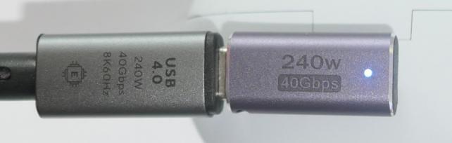 アダプターには、240W/40Gbpsというシルク印刷がなされているので、アダプター利用時に仕様が確認でき安心です。